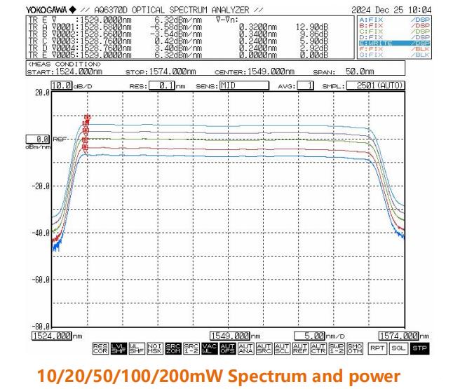 ASE பிராட்பேண்ட் ஒளி மூலங்கள்அரிய-பூமி டோப் செய்யப்பட்ட இழைகள் (எ.கா., எர்பியம்-டோப்) மூலம் பெருக்கப்பட்ட தன்னிச்சையான உமிழ்வை உருவாக்குங்கள். குறைக்கடத்தி ஒளிக்கதிர்களால் உந்தப்பட்ட, உற்சாகமான அயனிகள் ஃபோட்டான்களை வெளியிடுகின்றன, அவை பரந்த, தட்டையான ஸ்பெக்ட்ரம் (பொதுவாக சி-பேண்ட் 1530-1565 என்எம் மற்றும் எல்-பேண்ட் 1565-1625 என்எம் ஆகியவற்றை உள்ளடக்கியது) ஆதாய-ஃபிளாட்டிங் வடிப்பான்கள் வழியாக உருவாக்கப்படுகின்றன.