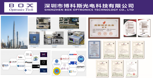 ஷென்சென் பாக்ஸ் ஆப்ட்ரானிக்ஸ் டெக்னாலஜி கோ., லிமிடெட்.(BOX Optronics Tech) என்பது ஃபைபர் ஆப்டிக் கம்யூனிகேஷன் மற்றும் ஃபைபர் ஆப்டிக் சென்சிங் ஆகியவற்றில் நிபுணத்துவம் பெற்ற உயர் தொழில்நுட்ப நிறுவனமாகும். வாடிக்கையாளர்களுக்கு உயர்தர தயாரிப்புகள் மற்றும் சேவைகளை வழங்குவதற்கும், விரைவான சேவை மறுமொழி நேரங்கள் மற்றும் வாடிக்கையாளர்களுக்கு அதிக மதிப்பை உருவாக்குவதற்கும் நிறுவனம் உறுதிபூண்டுள்ளது. வலுவான R&D, உற்பத்தி மற்றும் விற்பனை திறன்கள் மற்றும் அனுபவம் வாய்ந்த தயாரிப்பு மேம்பாட்டு பொறியாளர்கள், நிறுவனம் பல்வேறு வாடிக்கையாளர் தேவைகளுக்கு ஏற்ப தனிப்பயனாக்கப்பட்ட தயாரிப்புகளை வடிவமைக்க முடியும். பல ஆண்டுகளாக, நிறுவனம் தொழில்நுட்ப கண்டுபிடிப்புகளில் உறுதியாக உள்ளது, தொடர்ந்து மேம்பட்ட தொழில்நுட்பங்கள் மற்றும் திறமைகளை அறிமுகப்படுத்துகிறது. இது AAA-நிலை கடன் நிறுவனம், தொழில்நுட்பம் சார்ந்த SME மற்றும் தேசிய உயர்-தொழில்நுட்ப நிறுவன சான்றிதழ்களைப் பெற்றுள்ளது, மேலும் ISO9001 தர அமைப்பு சான்றிதழை வெற்றிகரமாக நிறைவேற்றியுள்ளது, கணினி தேவைகளை கண்டிப்பாக கடைபிடிக்கிறது மற்றும் தயாரிப்பு தரத்தை கடுமையாக சோதிக்கிறது.