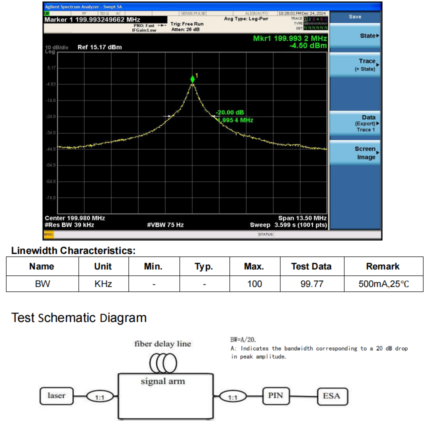 பெட்டி ஆப்ட்ரானிக்ஸ்1550nm, 100mW, 100kHz குறுகிய-வரி அகல DFB லேசர் டையோடு ஒரு 14-பின் பட்டாம்பூச்சி தொகுப்பில் ஒருங்கிணைந்த TEC வெப்பநிலை கட்டுப்பாடு மற்றும் கண்காணிப்பு PD உடன் அறிமுகப்படுத்தப்பட்டது. இதுதயாரிப்பு100kHz க்கும் குறைவான FWHM இல் முழு அகலத்தையும் 40dB க்கும் அதிகமான SMSRஐயும் பெருமைப்படுத்தும் ஒரு விநியோகிக்கப்பட்ட பின்னூட்ட அமைப்பைப் பயன்படுத்துகிறது. 1550nm அலைநீளம் தகவல் தொடர்புத் துறையின் "குறைந்த இழப்பு சாளரத்தில்" விழுகிறது. 100kHz க்கும் குறைவான அதன் குறுகலான லைன்வித்த் மற்றும் 40dB க்கும் அதிகமான SMSR ஆகியவை கட்ட இரைச்சல் மற்றும் ஒத்திசைவான பரிமாற்றத்தில் பயன்முறை குறுக்கீட்டை திறம்பட குறைக்கிறது, இது அதிவேக, நீண்ட தூர ஃபைபர்-ஆப்டிக் தகவல்தொடர்புகளுக்கு ஒரு முக்கிய ஒளி மூலமாகும்.